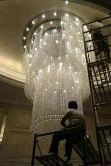 一般酒店客房燈久了 ,只是在水晶表面蒙了一-層灰塵 ,并沒有難以清除的污跡。這種情況下清洗水晶球吊燈,并不需要專業(yè)人員將吊燈拆解下來,只需站在高處,用干凈柔軟的棉布輕輕拂拭即可。不需要用水或者其他清潔劑即能使水晶球吊燈恢復光彩。擦拭時要注意輕輕用手托住水晶球吊燈,同時也要注意自己在高處的安全。